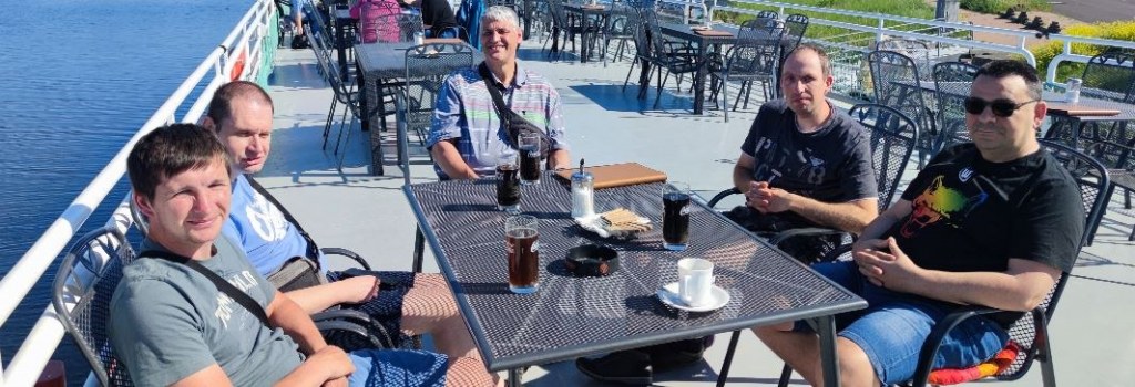 Einige Männer aus dem Intensiv Betreuten Wohnen Am Aschberg 2 unternahmen einen Ausflug zum Wasserstraßenkreuz Magdeburg inklusive einer Schifffahrt.