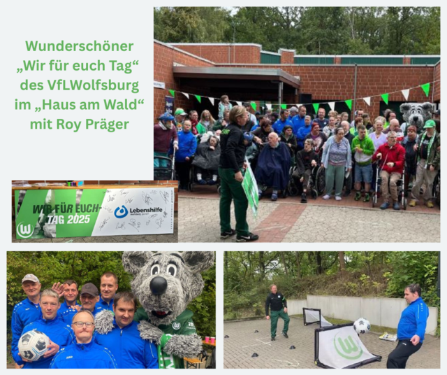 Ein besonderer Dank an Frau Koschnick und ihr Team vom „Haus am Wald“ der Lebenshilfe Wolfsburg gGmbH für die Einladung und an die Fussballlegende Roy Präger und den gesamten VfL Wolfsburg für diesen tollen Tag.
